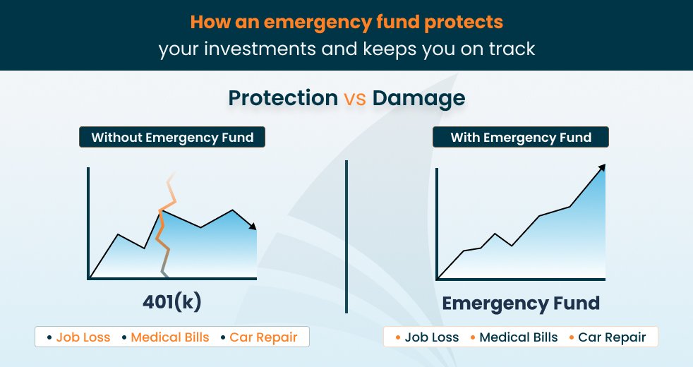When income stops or expenses rise suddenly, your emergency fund keeps you from tapping into your retirement savings or using high-interest credit cards.